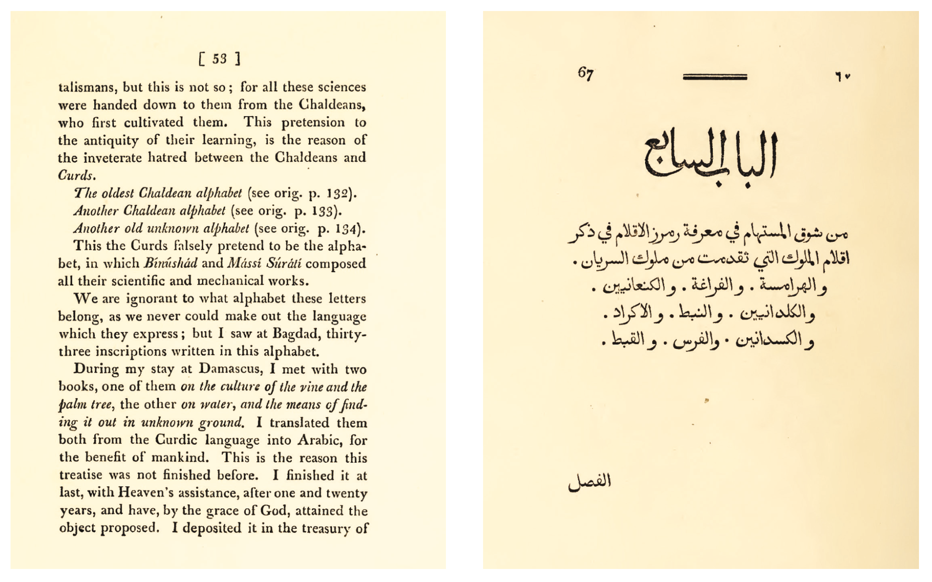أثناء دراستي للماجستير سنة 1999 وضمن المراجع التي كنت ألجأ إليها وجدت في كتاب «معجم المطبوعات العربية» لإليان بن موسى سركيس، وجاء في ترجمة لابن وحشية (توفي بالقرن العاشر الميلادي) أنه ذكر في نهاية كتابه «شوق المستهام» أنه ترجم من الكوردية كتابين! ثم عرفت أن «شوق المستهام» طُبع في أوروبا قبل قرنين، وأن المخطوطة الأصلية ترجع لأكثر من عشرة قرون، فشمرت للبحث عن الكتاب، وكان أقصى غايتي العثور على عناوين بعض الكتب الكوردية القديمة، لكنني لم أكن أتوقع أن أجد فيها الأبجدية الكوردية!