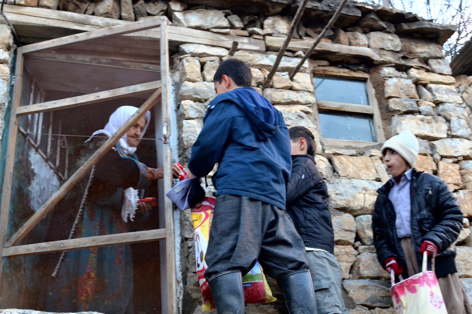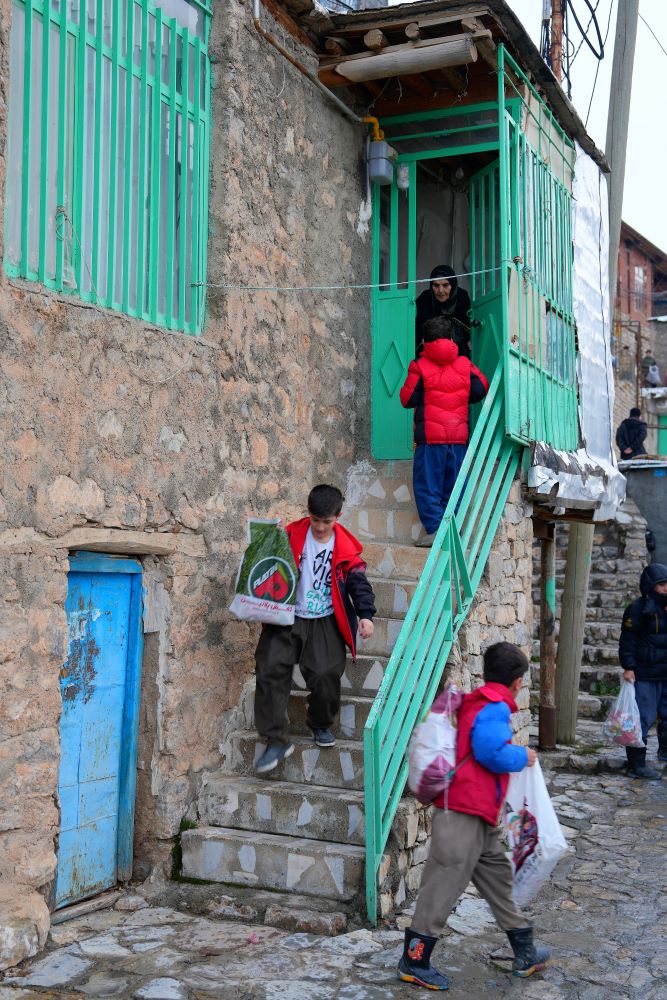 أطفال كورد يجمعون السكاكر والحلويات من بيوت الجيران يوم العيد