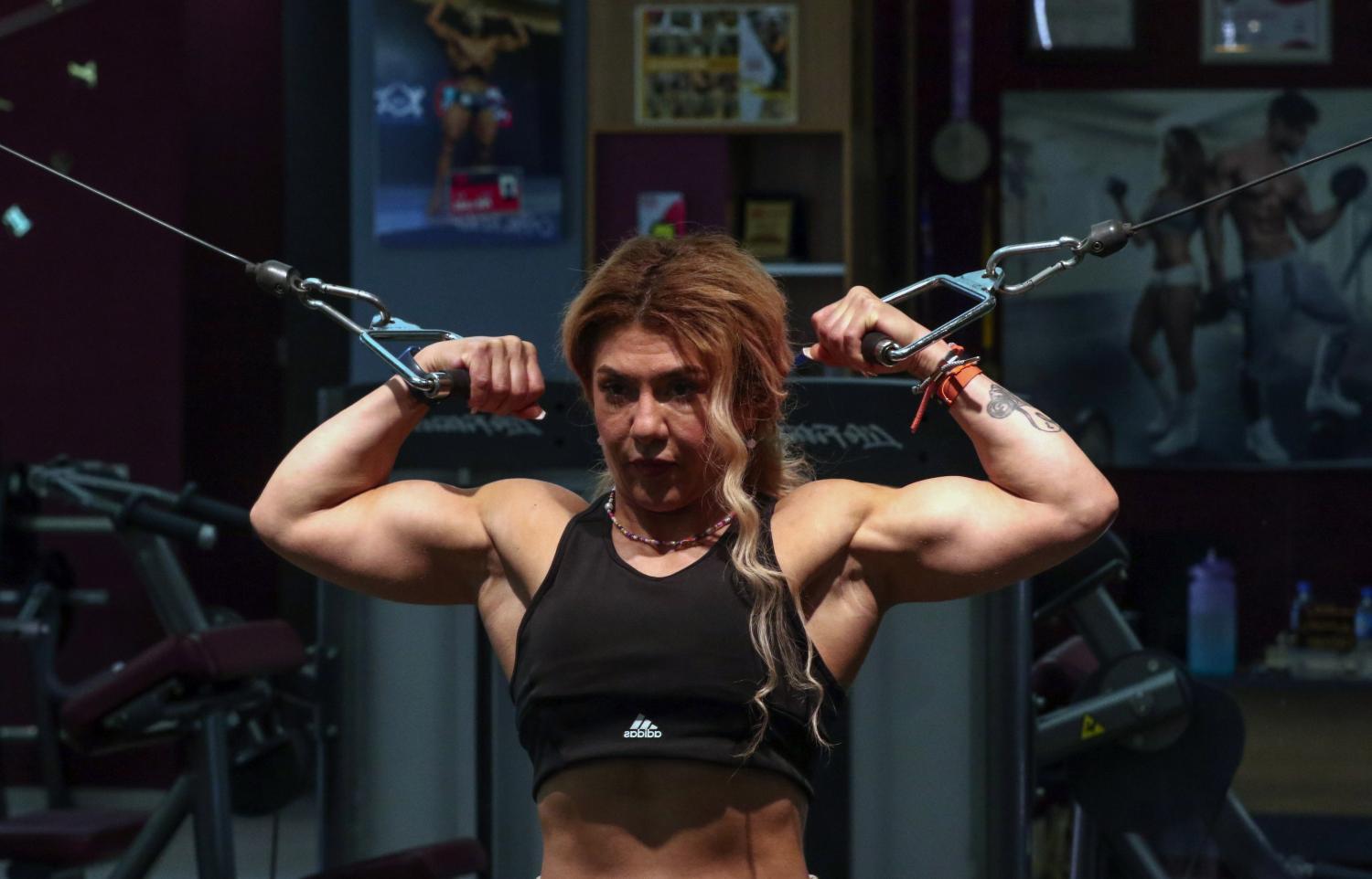 تغطي العضلات البارزة مختلف أنحاء جسد اللاعبة الشقراء ذات العينين الزرقاوين، وما تزال تمارس تمارين شاقة لتقوية عضلاتها وتطويرها بهدف تحقيق المزيد من النتائج.