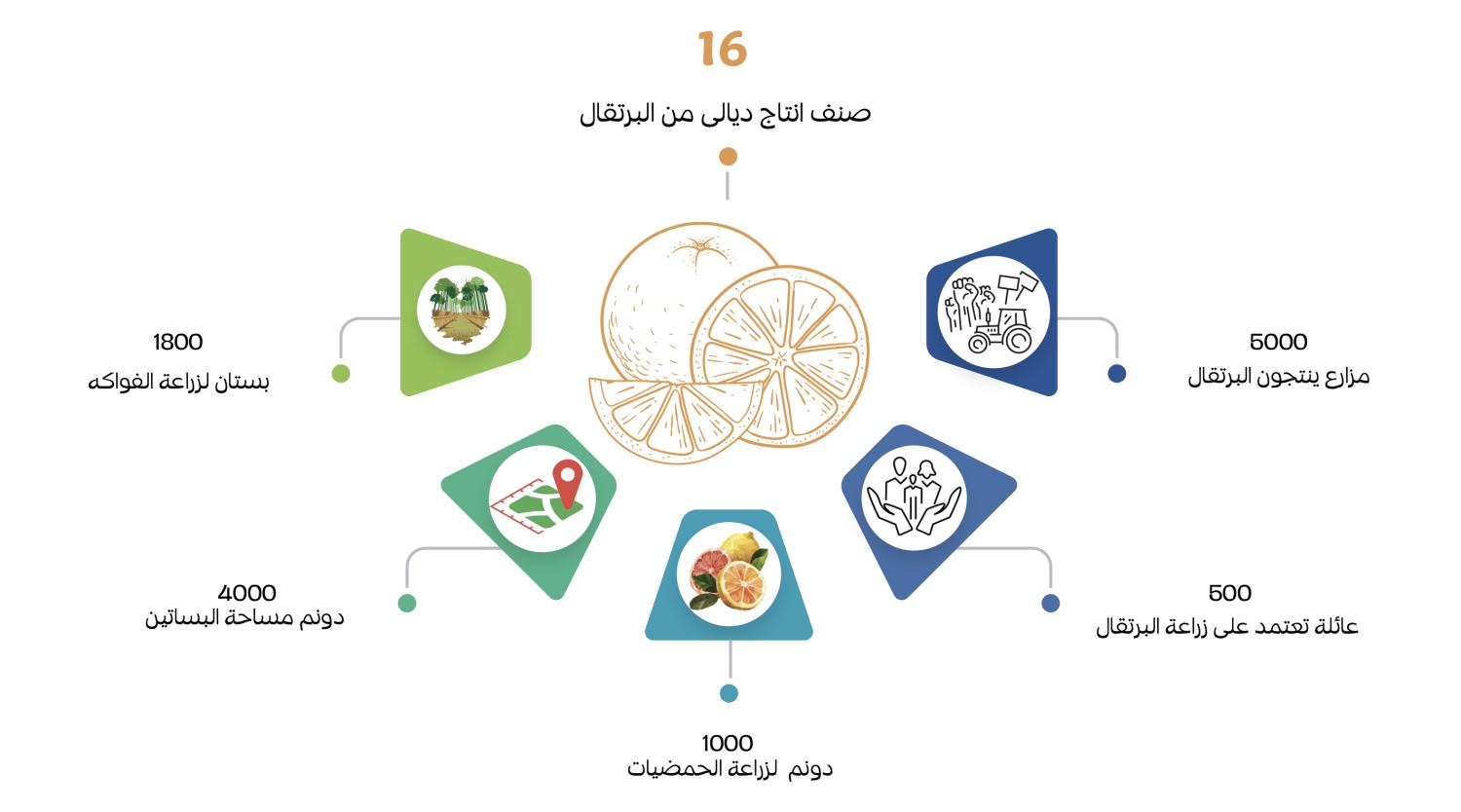 نظام الري: يعتمد على وادي الحران والآبار، مع استخدام الري بالتنقيط في البساتين النموذجية.