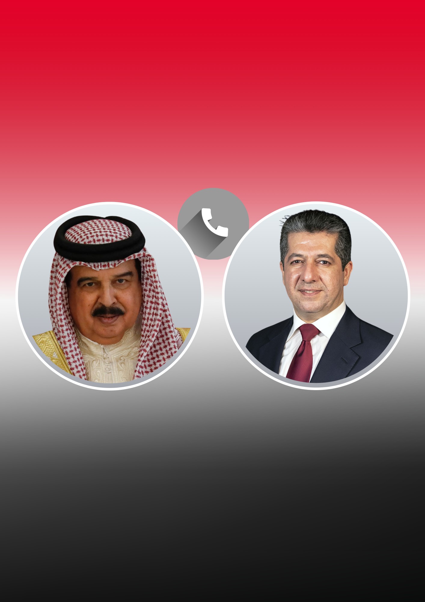 أجرى رئيس حكومة إقليم كوردستان مسرور بارزاني، مساء اليوم الجمعة 6 مارس 2026، اتصالاً هاتفياً مع عاهل مملكة البحرين الملك حمد بن عيسى آل خليفة، تناول خلاله الطرفان مجمل التطورات الراهنة في المنطقة، ولا سيّما في البحرين والعراق وإقليم كوردستان، فضلاً عن استعراض آخر مستجدات الحرب والتوترات المتصاعدة وتداعياتها على المشهد الإقليمي.
