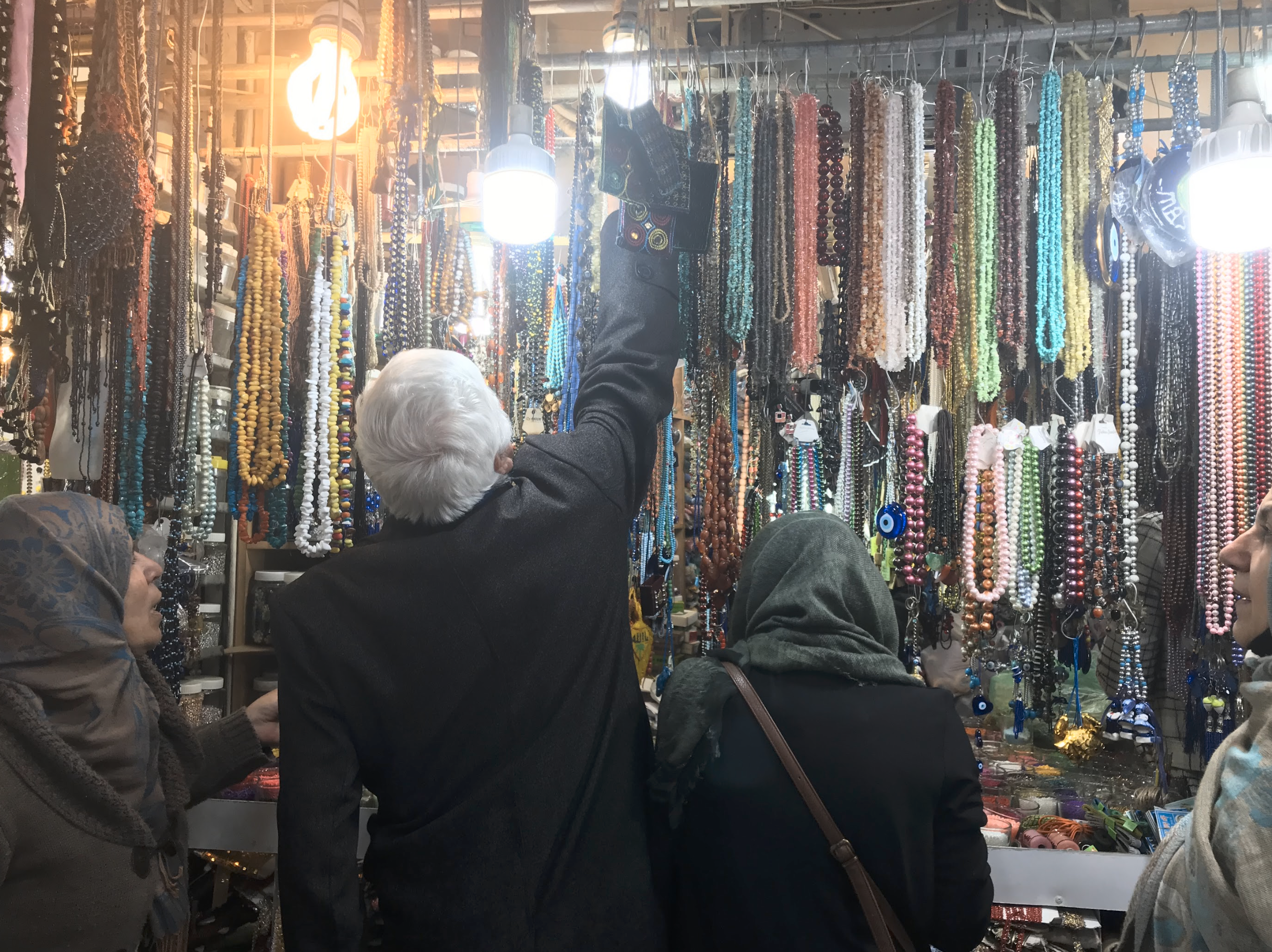«كنت أعمل في بازار التهريب، هكذا كانوا يطلقون على البازار المجاور للقيصرية في تلك الفترة»، تشرح دانا إسماعيل، الزبونة المنتظمة. «كان منزلنا في چوارباخ. عندما كنت أمر من القيصرية في طريقي إلى مكان عملي، كانت حبات الخرز الصغيرة تلفت نظري. في المساء، عندما كنت أعود إلى البيت مبكراً، كنت أذهب من هناك في زيارة سريعة. أحبه. إنه مكان قديم. يحتوي على أشياء أحبها لأنني أحب ممارسة الأعمال اليدوية مع الخرز، مثل الأساور».