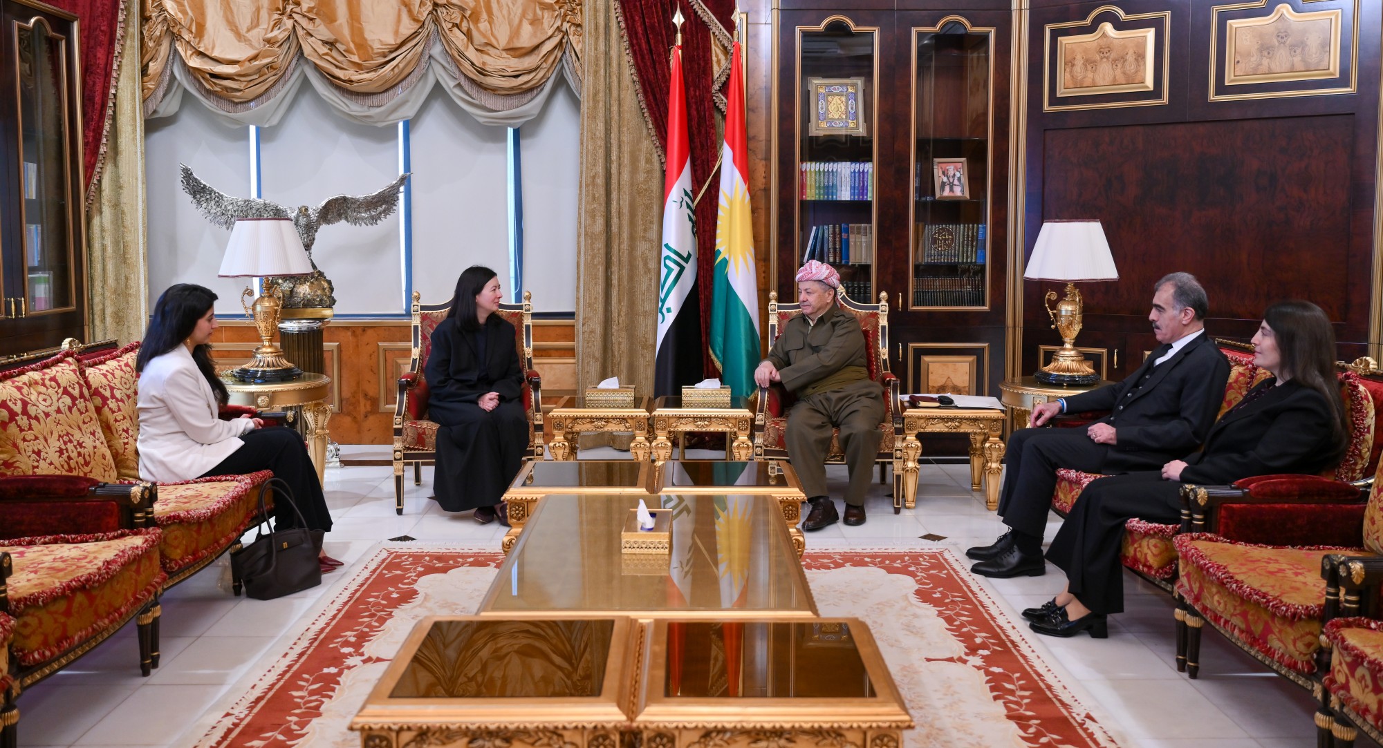 استقبل الرئيس مسعود بارزاني، اليوم الأربعاء الموافق (11 شباط/فبراير 2026)، في منتجع بيرمام، السيدة فيكتوريا تايلور، النائبة السابقة لمساعد وزير الخارجية الأمريكي لشؤون العراق وإيران، والمسؤولة الحالية عن قسم مبادرة العراق في مركز المجلس الأطلسي للدراسات.