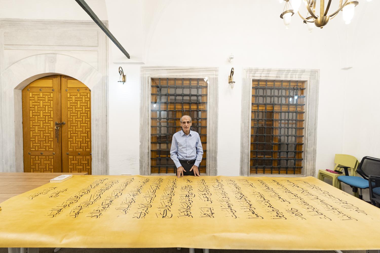 في عام 2016، أبدع الخطاط علي زمان، بخط مصحف بطريقة مبتكرة جسّد فيه المعاني بصرياً، فكتب سورة النحل على هيئة خلايا النحل، غير أنّ ذلك كله لم يثنه عن فكرة خوض تحدٍ أكبر. فبدأ في عام 2019، رحلة غيّرت كل شيء: مشروع أكبر مصحف مخطوط في العالم. وكانت تركيا، بتراثها العثماني المحطة التي انفتح فيها طريقه نحو الحلم الكبير. هناك، في ظلال مسجد مهرماه سلطان وجد زمان ملاذاً لاحتضان طموحه، فقد فتح له إمام المسجد، الشيخ إبراهيم حقي، بابَ غرفةٍ صغيرة، فصارت تلك الزاوية المتواضعة ورشة أحلامه وانطلاقة مشروعه. في ذلك الفضاء المهيب، بين صدى التلاوات وهمس الدعاء من شفاه المُصلّين وعبق التاريخ الذي ترويه جدران المكان، يبدأ الخطاط الكوردي علي زمان، برنامج عمله اليومي بعد صلاة الفجر، ويُنهيه بعدما يكون الإعياء قد نال منه.