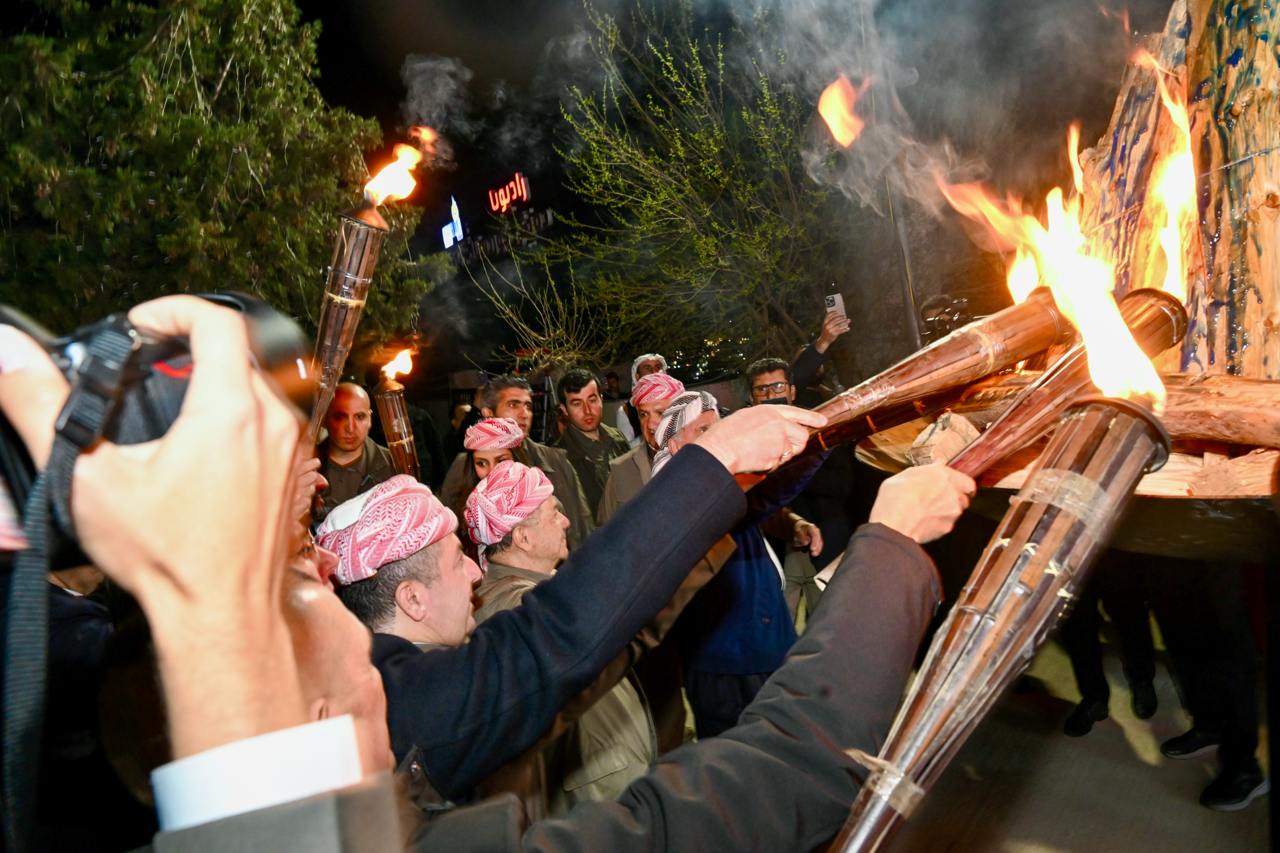 أوقد الرئيس مسعود بارزاني، مساء الخميس 20 آذار/مارس 2025، شعلة نوروز في مدينة عقرة (ئاکرێ)، المعروفة بعاصمة نوروز، وسط
