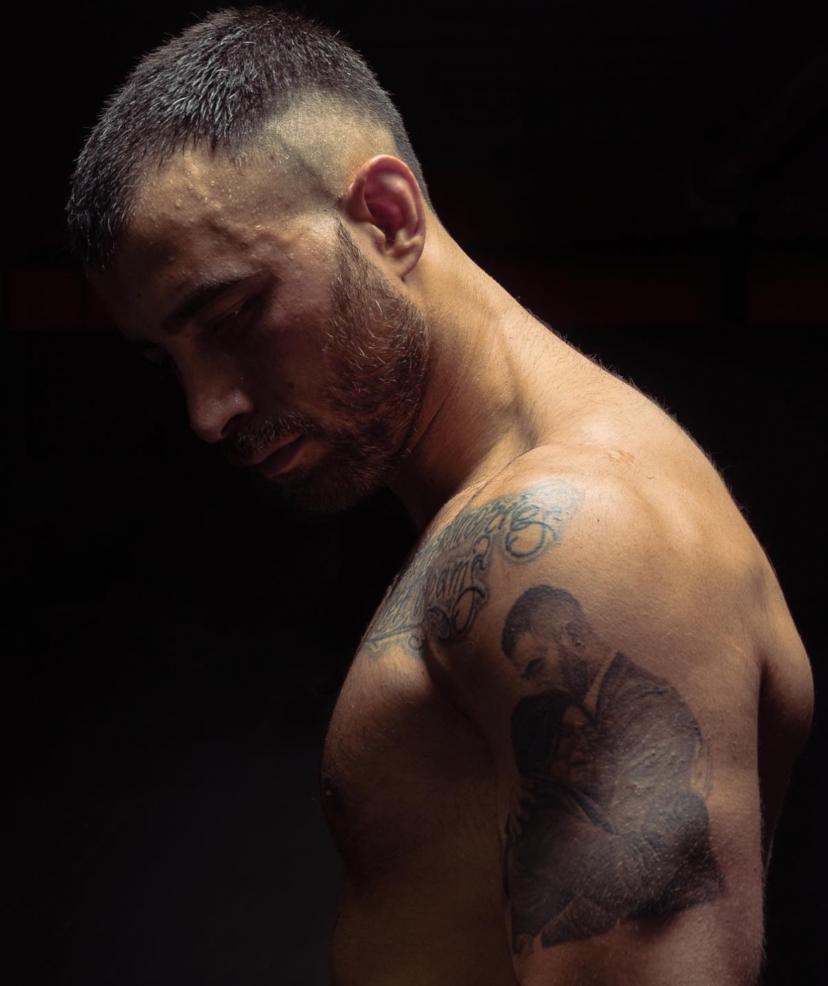 ماكوان أميرخاني، محارب ملفوف بالعلم الكردي، يرفع قبضته عالياً بعد فوز شاق في مثمن بطولة القتال النهائي (UFC)، وهي الحل