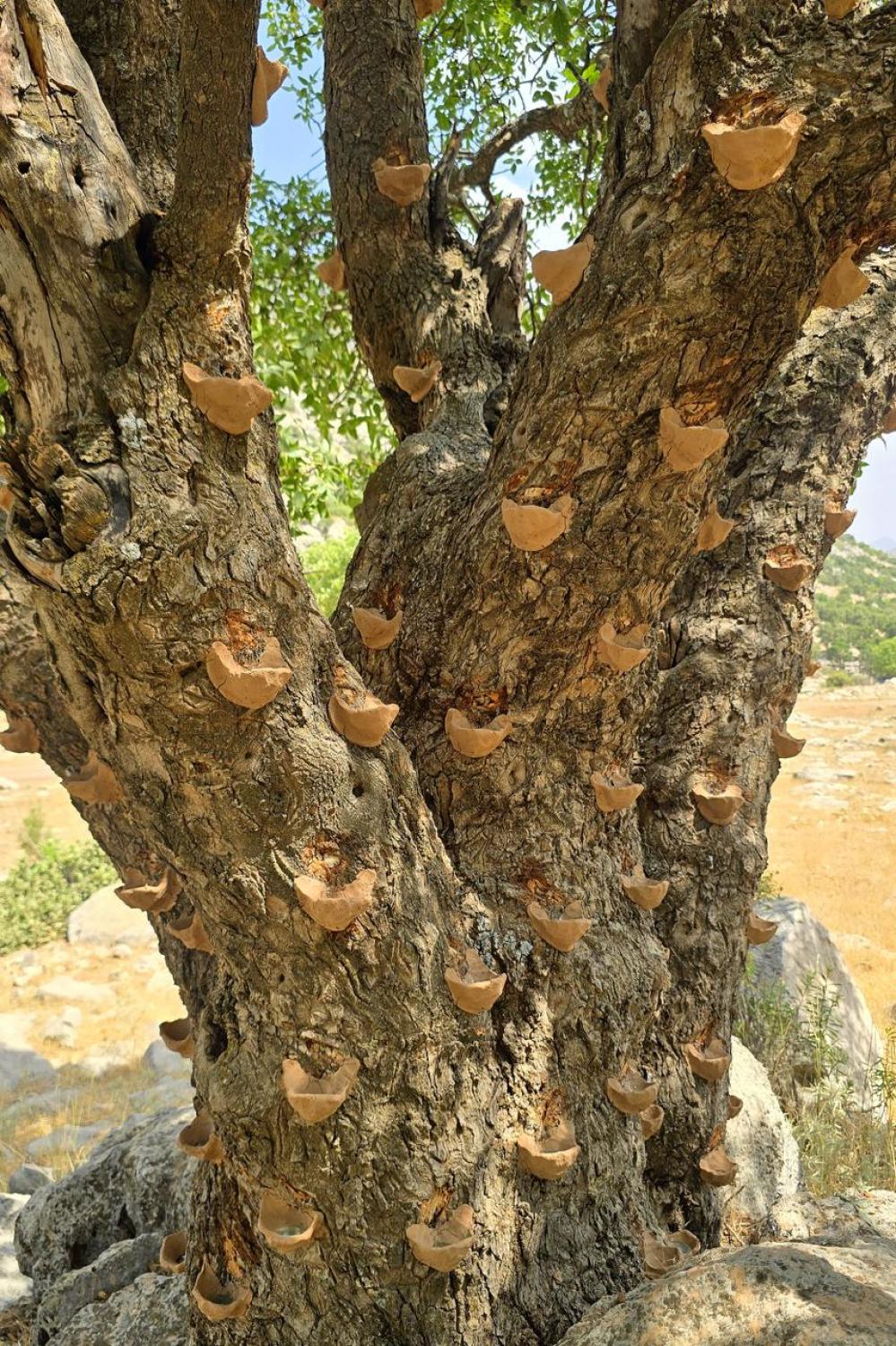 يتوجه العشرات من القرويين، رجالاً ونساءً، في رحلات يومية إلى الغابات الطبيعية في المناطق الجبلية، لجني اللبان واستخراجه من جذوع الأشجار وسط أجواء الفرح والترفيه والدبكات الشعبية.