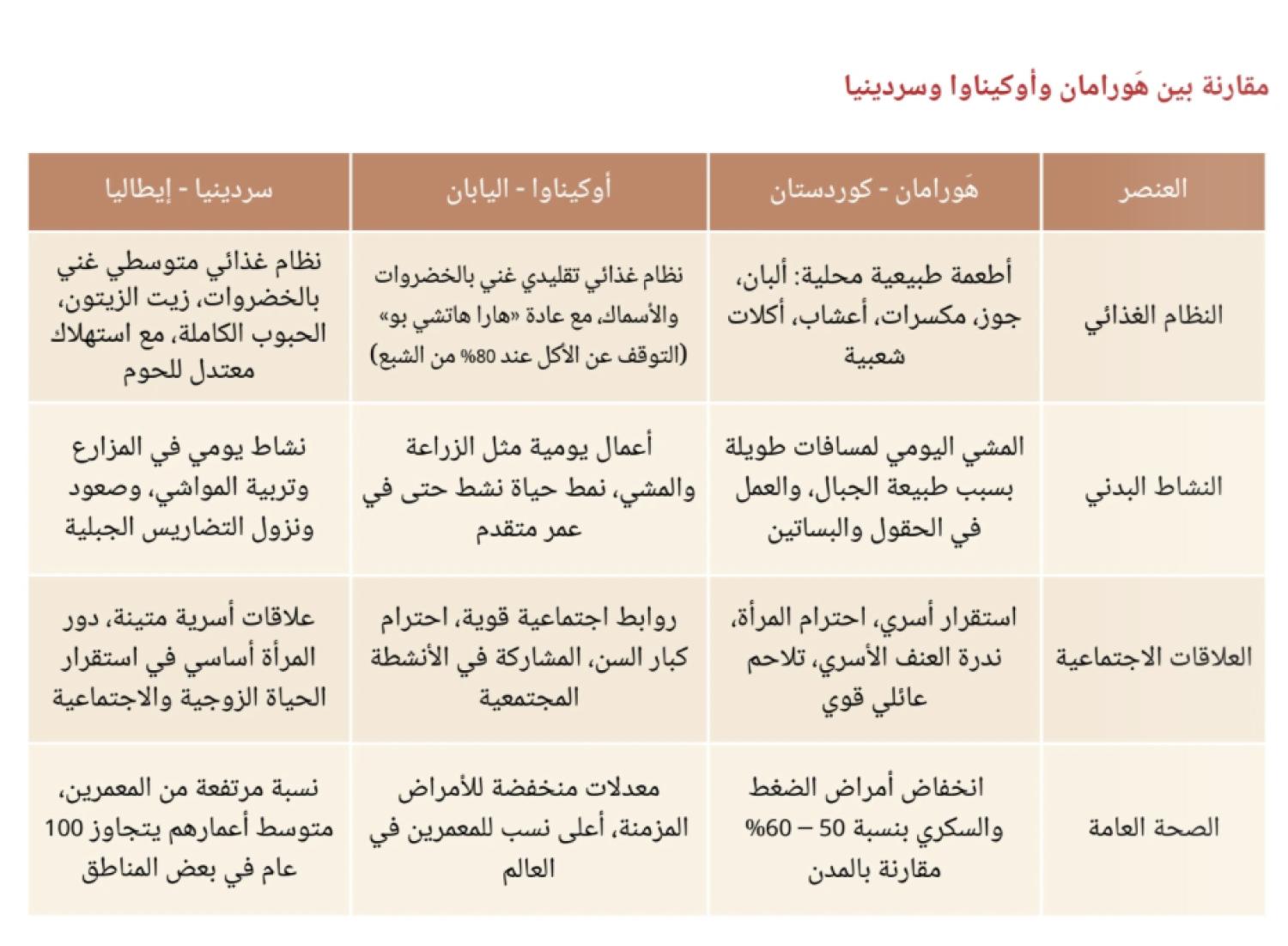 وأضاف أن أسلوب الحياة في هذه المنطقة ساهم في الحفاظ على صحة المسنين، حيث يواظبون على الحركة ويعتمدون على الأكل الصحي الطبيعي، ويبتعدون عن المأكولات السريعة والمصنعة لذلك فإن نسبة الإصابة بأمراض الضغط والسكري بين سكان هورامان أقل بنسبة 50 إلى 60% مقارنة بسكان المناطق الأخرى.